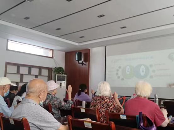 讲座主题为“换一个角度看人生”,董静老师通过权威的数据、丰富的事例和有趣的方式向老年人展现了积极的生活态度。同时通过积极的互动方式,让参与讲座的老年人“沉浸式”感受讲座主旨,转变消极的思想观念,正确看待心理健康和身体健康,关注慢性疾病的危害,认识到是哪些因素造成的。